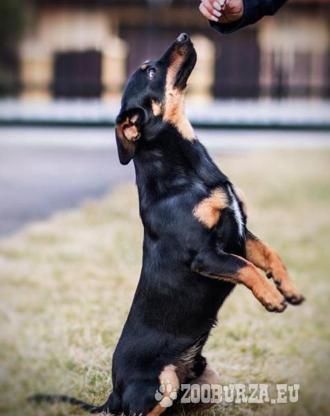 Opis: Bastuś to ok. roczny maluch w typie jamnika. To prawdziwy wulkan energii. Jest i będzie małym psem, jego potrzeby są jednak takie same jak większych psów. Bastek wymaga starannego wychowania oraz zaspokojenia jego potrzeb ruchowych. To bardzo kontaktowy i świetnie współpracujący pies. Nie znosi nudy; jak przystało na psa w typie jamnika uwielbia wszelkiego rodzaju prace wydobywcze - chętnie przekopie grządki lub popracuje nad tunelem pod ogrodzeniem a kwiatki w rabatce wymieni na pieczołowicie zakopane kości. W stosunku do innych zwierząt (psy i koty) bywa lekko zaczepny, istnieje duża szansa na pozytywne ułożenie relacji ze zwierzakiem rezydentem telefon 698 693 904