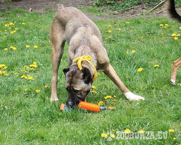Opis: Kaśka, Katarzyna, to 40 kg psiej miłości, radości i oddania. Ktoś ją porzucił, znalazła się w schronisku, być może nie spełniła roli groźnego psa, bo Kasia groźna nie jest. Ktoś domowym sposobem uciął jej uszy, barbarzyńsko. Musiała się strasznie nacierpieć. Kaśka lubi ludzi, dogaduje się z psami. Jest troszeczkę lękliwa. Uwielbia biegać, bawić się. Lubi dzieci, chociaż widać, że troszeczkę ich towarzystwem się peszy, jakby nigdy wcześniej nie miała z dziećmi kontaktu. Nie wiemy czy dogada się z kotem, chociaż przypuszczenia są dosyć pozytywne, bo Kasia lubi wszystkich. Teraz po wyrwaniu ze schroniska Kaśka odżywa, jest pełna radości, biega jak szalona, tel 663 361 117