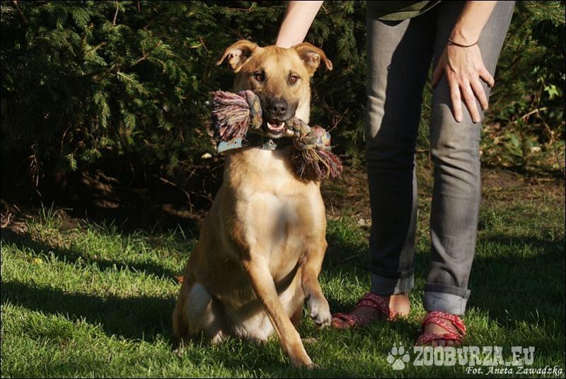 Opis: Maciek- jest pięknym pies przypominającym owczarka belgijskiego. Ma ok. 4 lat. Pod opiekę Fundacji trafił po tym jak ktoś znalazł go przytrzaśnietego we wnykach. Piesek poznał czym jest cierpienie. Miał strzaskaną łapkę. Pozostał mu po tym wypadku ślad: nieco krótsza jedna łapa...Na szczęście wystarczy spojrzeć na zdjęcia, by zauważyć, ze nie stanowi to dla niego w niczym przeszkody. Maciuś to przyjazny, wesoły i kochający wszystkich psiak. Ufny, oddany, mądry- uwielbia biegać po ogrodzie, aportować piłeczki i patyki. Szuka dobrego domu! Ludzi którzy poświęcą mu czas i nigdy nie porzucą. Z radością będzie wychodził z Tobą na długie spacery. el 501 588 482