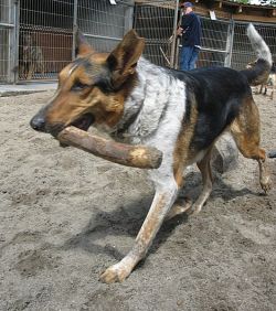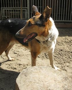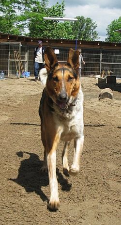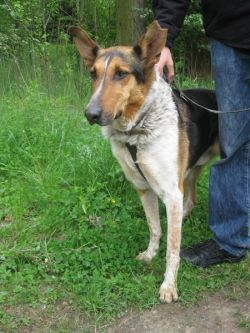 Opis: Rufi jest psem wyglądem przypominającym krótkowłosego owczarka szkockiego. Ma ok. 3 lat, więc jest dość młody. Ma piękne tricolorowe umaszczenie. Niestety, ze względu na jego duże gabaryty nikt nie chce zdecydować się na jego adopcję. Rufi czeka na dom już ponad rok i niestety powoli traci nadzieję, że go znajdzie. Rufi bardzo nie lubi wracać do kojca, najchętniej nie odstępowałby człowieka na krok. Jest bardzo grzecznym psem, nie w głowie mu psoty, choć nie pogardzi też dobrą zabawą z innym psem lub opiekunem. Bardzo lubi aportować ringo. Jest spokojny i opanowany, jednak potrzebuje sporej dawki ruchu.