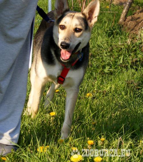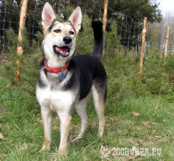 Opis: Przedstawiam Państwu Jędrzeja- młodego, pięknego psa, który pomimo niespełna roku poznał już co to głód i poniewierka. Najprawdopodobniej został wyrzucony w lesie przy bardzo ruchliwej trasie. Nie wiem jak długo wegetował w tym miejscu. Nie potrafił zdobywać dla siebie jedzenia, więc z głodu wychodził na ulicę a spał w rowie. Był bardzo zdezorientowany i zagubiony. Jeszcze praktycznie szczeniak, choć już duży, był całkowicie nieporadnym maluchem. Każdy dzień takiej beznadziei niekorzystnie wpływał na psychikę Jędrzeja. Stał się wycofanym, nieufnym i bojaźliwym psem. Przez pewien czas dokarmiałam go zostawiając jedzenie w lesie.