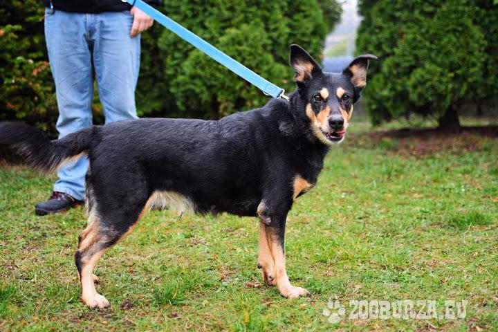 Opis: Omega to około 4-letnia suczka średniej wielkości - ma ok. 45 cm w kłębie. Jest zrównoważona i dość spokojna, ale lubi się czasem pobawić z opiekunem. Do ludzi nastawiona pozytywnie, z psami też dogaduje się bez większych problemów. Na smyczy początkowo troszkę ciągnie, lecz po spaleniu nadmiaru energii idzie ładnie. Jest bardzo grzecznym i posłusznym psem, uwielbia się przytulać i być blisko człowieka. Chętnie wspólpracuje z człowiekiem i szybko się uczy. Do schroniska trafiła po śmierci właściciela, przez co jest troszkę przerażona i zagubiona. Ma krótką sierść, która będzie wymagala szczotkowania. Kontakt w sprawie adopcji : 726-675-372