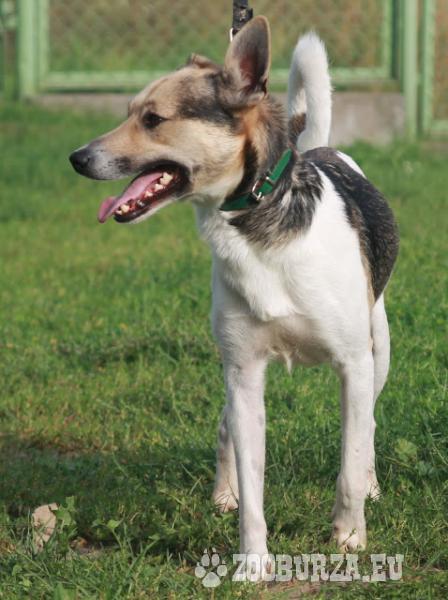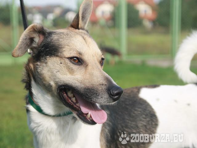 Opis: Tuptuś to pies średniej wielkości - wysoki ale o atletycznej budowie. Został przywieziony do schroniska jako przybłęda a jego wiek oceniono na 2 lata. Początkowo zdawało się, że nie ma ochoty na kontakt z człowiekiem, jednak zmieniło się to po kilku spacerach. Tuptuś bardzo lubi pieszczoty i ganianie za zabawkami. Dość grzecznie chodzi na smyczy, spacery z nim to czysta przyjemność - bardzo możliwe, że miał już kiedyś dom, gdzie został ułożony. Dogaduje się z sukami (lubi się z nimi bawić), ale w stosunku do innych samców jest dominujący. Tuptuś jest wykastrowany, zaszczepiony i gotowy do adopcji. Numer ewidencyjny Tuptusia: 709/12.