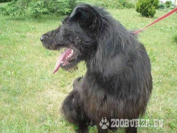 Opis: Ułan, to przepiękny 4-letni czarny kudłacz, troszkę w typie czarnego teriera rosyjskiego. Niestety, pomimo swego wdzięku i wspaniałego charakteru wiedzie swój psi żywot w schronisku. Jest on psiakiem bardzo przyjaznym, potrafi chodzić na smyczy, domaga się kontaktu z człowiekiem i pieszczot, tak z pewnością jest to pies który uwielbia głaskanie. Ułan jest młodym psem, który z ogromną chęcią będzie wraz z Tobą aktywnie spędzać czas na joggingu, wycieczkach rowerowych, czy też długich spacerach. Z takim psem Twoje życie na pewno stanie się weselsze, gdyż Ułan będzie wspaniałym kompanem jeszcze przez wiele lat. Pies ten potrzebuje jedynie szansy na dom i kochającego właściciela. Dzierżoniów