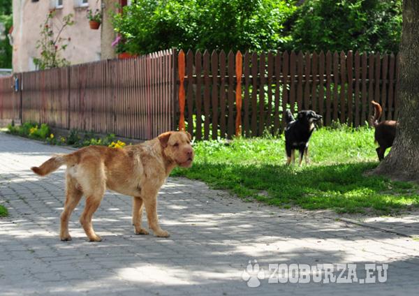 Opis: "Pierwszy raz spotkałam go chyba dwa miesiące temu, zwróciłam uwagę na mixa bo jest nietypowy, bardzo piękny i trudno go nie zauważyć. Kilka dni później znów go zobaczyłam w dość dużej odległości od miejsca pierwszego spotkania. I zapaliła mi się czerwona lampka! Kolejne spotkanie na granicy Dzierżoniowa i Piławy Dln - szedł sobie poboczem, byłam już pewna, że pies jest bezdomny i się tuła..." Tak zaczęła się historia Rastiego. Pies-cudak. Pies wyjątkowy. Pies jedyny w swoim rodzaju. Rasty to mix sharpeya z czymś szorstkowłosym. Piękny. Ma około 1,5 roku. Dzierżoniów