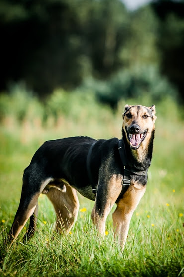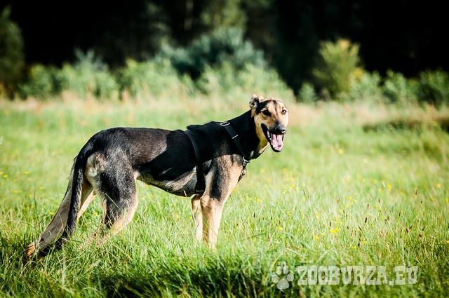 Opis: Asar to ofiara świętokrzyskiej wsi. Leżał samotny w polu, bezdomny ... Psiak jest młodym mieszańcem charta, to jeszcze dziecko. Chłopak ma ok. 9-12 mies, piękne białe zęby i szczeniackie zachowania. Jest dużym psem, w kłębie ma ok. 70 cm, waży 26 kg. Wygląd może świadczyć o tym, że miał kiedyś w swoich przodkach jakiegoś charta polskiego. W tej chwili jeszcze ciut chudy, z matową i zniszczoną sierścią. Ma obłędnie wielkie, czasami sterczące uszy. Azar psi dzieciak, beztroski, wyluzowany - teraz - bo niektóre zachowania świadczą o tym, że człowiek nie od początku był dla niego synonimem bezpieczeństwa. 501 341 021