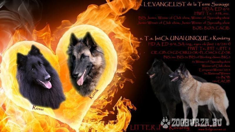 Opis: We are taking reservation for Groenendael (maybe Tervueren) puppies with FCI pedigree, foreign mating in Hungary. Pregnancy confirmed by ultrasound. We expect puppies around April 18th, 2015 Puppies will be vaccinated, dewormed, microchipped, with pet-passport and checked for hereditary eyes diseases. We ecpect healthy puppies with very nice exterior, suitable for shows, breeding or different dog sports, as well as excellent family dogs. More information on www.zkovarny.com, www.belgicaci.wz.cz, or phone 00420 608 870 565, hana@zkovarny.com