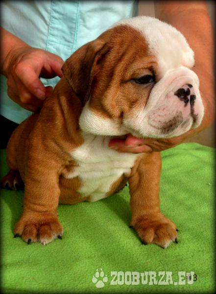 Opis: Witam! Dnia 12 lipca w naszej hodowli "Angus" przyszło na świat 8 szczeniąt rasy buldog angielski- 4 suczki i 4 psy. Matka CREST nad Bełdówką (tegoroczny champion Polski), ojciec MAIUS Czin- Czin. Maluchy są 2 razy odrobaczone, raz zaszczepione, tatuowane, gotowe do oddania w dobre ręce. Przy odbiorze posiadać będą książeczkę zdrowia oraz metrykę Związku Kynologicznego w Polsce. Wychowane w domu z dziećmi oraz innymi zwierzętami, będą z pewnością doskonałymi przyjaciółmi dla Waszych rodzin! :) Więcej informacji otrzymają Państwo pod numerem telefonu: 791838632. Pozdrawiam i zachęcam do kupna!