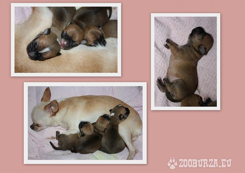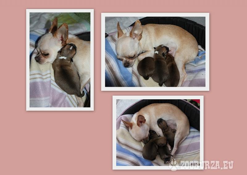 Opis: Posiadamy piękne szczenięta chihuahua krótkowłose ur.17.04.2013r po: wspaniałym Ojcu – Champion Polski - Bramerita DREAM LOVER maść czarny ze znaczeniami, waga 1,8kg Matka piękna hodowlana suczka z naszej hodowli Foxy Chi Gold Dogs maść biszkoptowa, waga 1,8kg. W ofercie dwa pieski i jedna sunia. Zapraszamy do rezerwacji, odbiór pod koniec czerwca, pieski będą zaszczepione, odrobaczone wraz z metrykami i książeczkami zdrowia + wyprawka z firmy ROYAL. Cena szczeniaka od 2tys do 3tys. Więcej informacji udzielamy telefonicznie bądź meilowo i na gg.