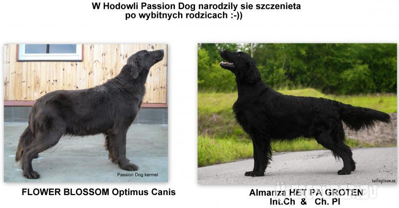 Opis: Z urodzonych w dniu 1 marca w hodowli Passion Dog przesłodkich flatów mamy już tylko 2 chłopaków. Ich mamą jest FLOWER BLOOSOM Optimus Canis a tatą Interchampion, MultiChampion Almanza HET PA GROTEN. Oboje rodzice są całkowicie wolni od dysplazji biodrowej i łokciowej, oraz od genetycznych chorób oczu. Szczenięta są zaszczepione, kilkukrotnie odrobaczone, z chipem i metryką ZkwP a każde otrzyma wyprawkę Euakanuby. Zapraszamy do zakupu szczeniąt. Jeżeli masz daleko do nas zadzwoń, wspólnie rozwiążemy ten problem!! Zapraszamy na naszą stronę- passiondog.pl