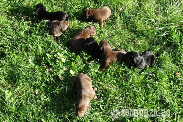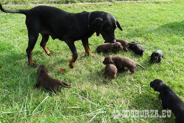 Opis: SZCZENIAKI rasy GOŃCZY POLSKI ur. 25.08.2020r. po rodzicach aktywnie polujących, same suczki, w tym 5 o umaszczeniu czekoladowym, z hodowli myśliwskiej „ze Sklobskiej Morgi”, rodzice: DUMKA z Sokołowskiej Ziemi - JUHAS Piwniczański Jazgot (ChPl). Maluchy gotowe do odbioru po 20.10.2020r. w Rzucowie (k. Radomia, 8 km od m. Przysucha). Szczeniaki będą po przeglądzie hodowlanym Związku Kynologicznego w Polsce, z metrykami, upoważniającymi do wydania rodowodów. Kontakt tel. 604-134-350. Serdecznie zapraszamy do odwiedzin.