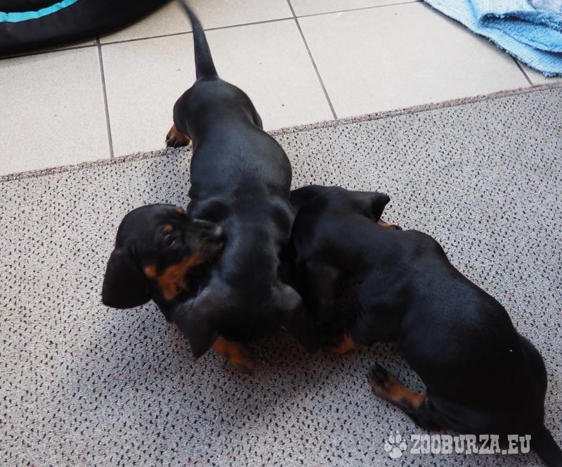 Opis: Dwa jamniczki królicze, czarne podpalane sprzedam w dobre ręce. Psiaczki maja już prawie 8 tygodni, są już 2 razy odrobaczane, posiadają książeczki zdrowia. Zdrowe, zadbane!