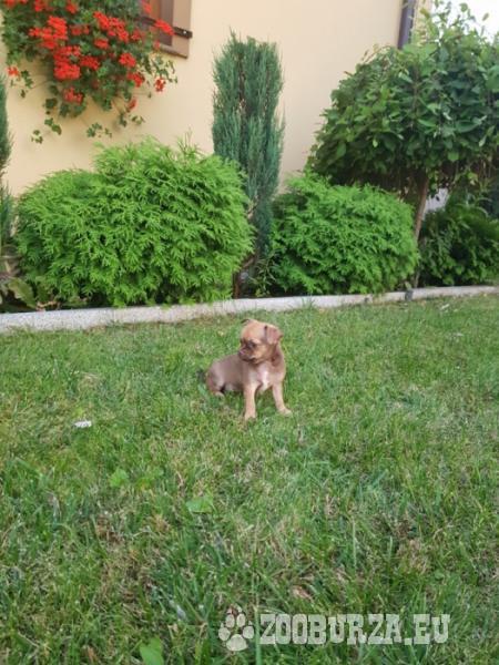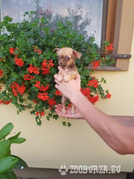 Opis: Witam. W naszej hodowli (Kochane Urwisy - SWKiPR) urodził się przepiękny piesek Chihuahua. Maleństwo jest wyjątkowo urocze, ma prawidłową budowę ciała, jabłkowatą główkę .Piesek ma 9 tygodni i już może zmienić domek. Maleństwo wyjątkowo żywotne, uwielbia się bawić, jest przyjazny dla ludzi. Chowany w odpowiednich, domowych warunkach. Na ostatnim zdjęciu ojciec pieska. Posiada rodowód wielopokoleniowy, książeczkę zdrowia oraz jest zachipowany i odrobaczony, a w dniu odbioru otrzyma wyprawkę na lepszy start w nowej rodzinie. Piesek o wyjątkowym umaszczeniu, idealny na kolanka, spacery oraz do zabaw z dziećmi.