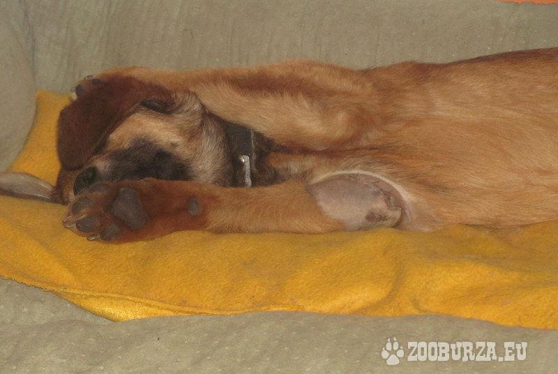 Opis: Nugat ma około 6u miesięcy, a już poznał, co to ból, cierpienie, głód i bezdomność. Może przez „chwilę” miał dom, ale został wyrzucony, jak śmieć. Czym sobie zasłużył na taki los? Urósł za duży, a może się znudził, jak pluszowa zabawka? Tułał się, przez jednych był dokarmiany, przez innych przeganiany. Prawdopodobnie wpadł pod samochód, gdyż został znaleziony ze zranioną łapką. Łapka została zszyta. Dobra dusza nie pozwoliła, by trafił do schroniska i przyjęła go do siebie, ale to dom tymczasowy, nie stały. Nugat jest radosny i otwarty wobec ludzi, lubi dzieci. Do psów, niezależnie od wielkości jest nastawiony pozytywnie. Na koty nie zwraca uwagi. W domu zachowuje czystość 6604363