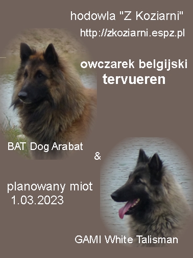 Opis: Przyjmujemy zamówienia na szczenięta Tervuereny z rodowodem PZK-PKPR. o: BAT Dog Arabat, m: GAMI White Talisman. Rodzice posiadają certyfikaty DNA, są mocnej budowy, doskonała psychika. Planowany poród około 1.03.2023r Hodowla z 30-letnim doświadczeniem.