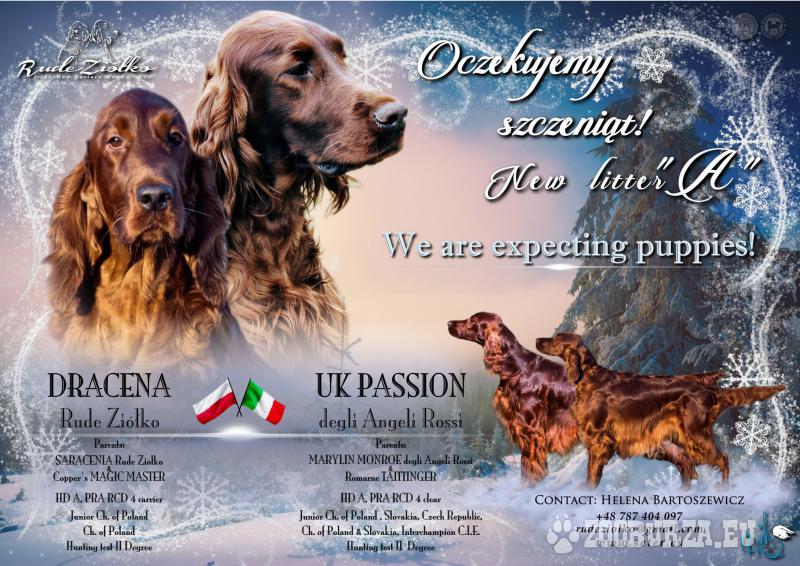 Opis: Miło nam poinformować o narodzinach szczeniąt ze skojarzenia: Seterday JONA (import ze Słowenii) Młodzieżowy Champion Polski, Champion Polski i CEREUS Rude Ziółko Młodzieżowy Champion Polski, Champion Polski Champion Słowacji Zapraszamy do kontaktu z nami i rezerwacji szczeniąt: (48)787404097 (48) 570655477 rudeziolko@gmail.com większą ilość zdjęć rodziców i innych seterów z naszej hodowli : www.facebook.com/helena.bartoszewicz oraz www.seter.eu