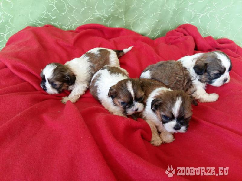 Opis: Witam, zapraszam do rezerwacji szczeniaczków rasy Shih-Tzu. Maluszki ur 23.02.2018. Maleństwa gdy będą opuszczały nasz dom będą po przeglądzie weterynaryjnym, odrobaczone,zaszczepione oraz będą miały wszczepiony chip. A poza tym otrzymacie Państwo rodowód UCI-ZHPR -rodowód uznawany jest w wielu organizacjach kynologicznych w kilkudziesięciu państwach z całego świata!!! Książeczkę zdrowia psa oraz wyprawkę Royal Canin. Szczeniaczki są po małych rodzicach umaszczenia tricolor. Docelowa waga szczeniaczka to ok 3,5 kg-4,5 kg. Istnieje możliwość wyrobienia paszportu i przygotowanie pieska do wyjazdu. Oraz możliwy dowóz maleństwa do nowego domku. Na wszelkie pytania odpowiem pod nr tel 512 331 457