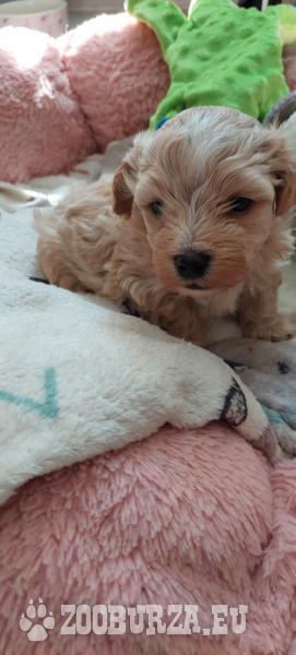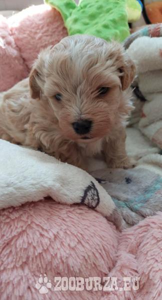 Opis: Przedstawiamy dostępnego pieska rasy Rosyjska Bolonka Kolorowa ur. 12.06.2025r. o imieniu ASTON VIVA DOG FCI. Piesek ma gęsty włos, bardzo ładną głowę, wyraziste oczka. Jest w kolorze biszkoptowym z dodatkiem białych znaczeń. Zgryz prawidłowy. Jest socjalizowany, ma kontakt z dziećmi oraz innymi zwierzętami. Bardzo wesoły i ciekawski. Rodzice: Mama: VANESSA VIVA DOG FCI PRA PRCD czysta. Tata: MAILO SHIRO SHO PRA PRCD czysty. Do nowego domku będzie gotowy po 14.08.2025. Piesek będzie po kontroli ZKwP P-ń, po odrobaczeniu, przebadany przez weterynarza, po dwóch szczepieniach, z mikroczipem, książeczką zdrowia. Będzie też posiadał swoją metrykę wydaną z ZKwP FCI i pełną dokumentację.