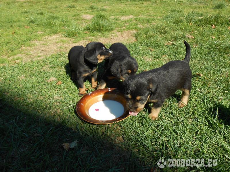 Opis: Dija troskliwa matka sześciorga szczeniąt szuka domu dla swoich pociech. Matka szczeniąt jagdterier pies myśliwski, ojciec nieznany prawdopodobnie pies sąsiada również terier, ale troszeczkę wyższy niż Dija, czarny i bardziej kudłaty. Psiaki urodziły się 02.08.2013 dwa psy i cztery suczki są bardzo ciekawe świata, energiczne i radosne wszystko wskazuje na to, że są już gotowe do oddania w dobre ręce.