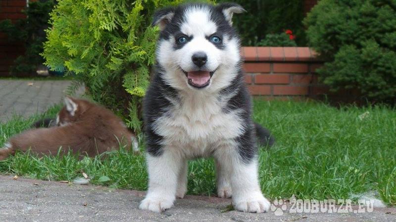 Opis: Mam do zaoferowania 2 szczeniaczki rasy SYBERIAN HUSKY po rodowodowych rodzicach. 2 pieski, czarno-białe, jeden niebieskooki drugo różnooki Szczeniaki są odrobaczone, zaszczepione oraz posiadają książeczki zdrowia Urodzone 28.05.2014 W razie pytań proszę o kontakt telefoniczny 796969600.