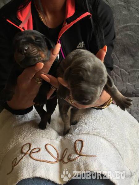 Opis: Mam do zaoferowania szczenięta dobermany z doskonałego skojarzenia. Szczenięta urodzone 05.05.2017, do odbioru będą w połowie czerwca 2017. W dniu odbioru będą odrobaczone, zaszczepione, będą mieć książeczkę zdrowia oraz metrykę Związku Kynologicznego w Polsce (zrzeszonego w FCI). 2 szczeniaki są koloru blue. Matka Hanna Montana Patoro Ojciec Kendy z Rancza Sutam. Cena od 1800-2900 0 zł.