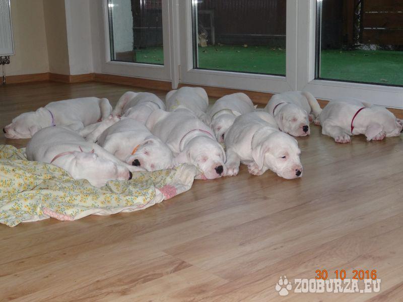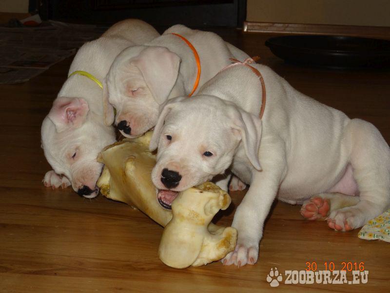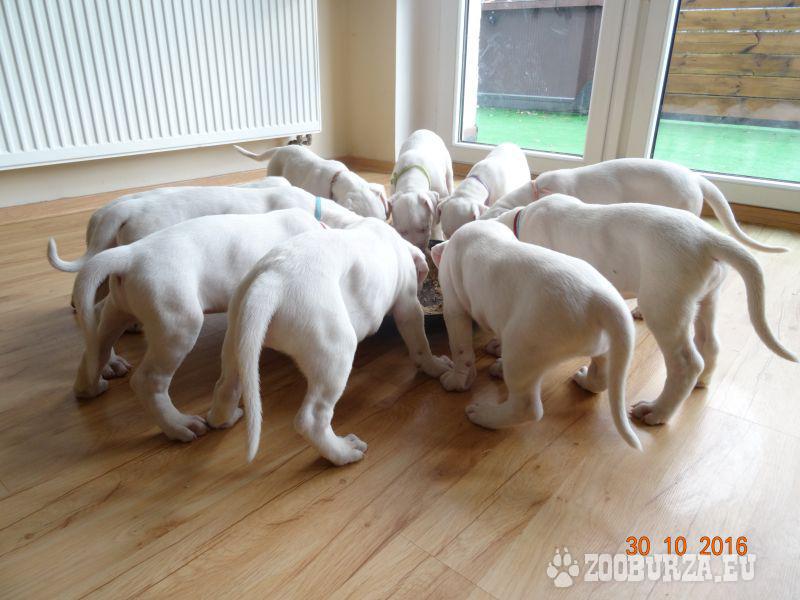 Opis: Szczenięta dog argentyński FCI Rodowody Hodowla Dogo Argentino zaprasza chętnych nabyciem szczeniąt tej rasy. Przyjmujemy rezerwacje na szczenięta z wyjątkowego skojarzenia Szczenięta w linii po Zwycięzcach Świata! Więcej informacji pod nr tel. 513 - pokaż numer telefonu - (podana cena jest kwotą rezerwacji) Urodzone 19.09.2016 odbiór w okolicach 13 listopad Szczenięta w dniu odbioru będa 2xodrobaczone ,zaszczepione, zaczipowane,beda posiadały metrykę(rodowód),książeczke zdrowia ,w razie potrzeby paszport ,będą po przegladzie miotu przez uprawnionego kierownkia Związku Kynologicznego w Polsce,ze stosownymi badaniami.