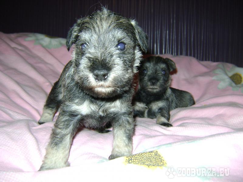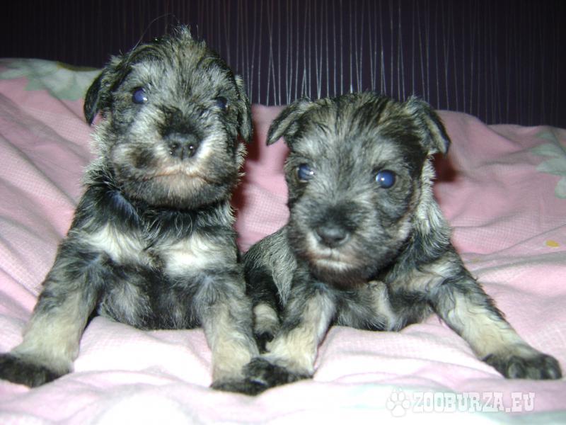 Opis: Sprzedam dwie suczki rasy sznaucer miniaturka umaszczenia pieprz i sól. Pieski są odrobaczone, zaszczepione oraz posiadają książeczki zdrowia.