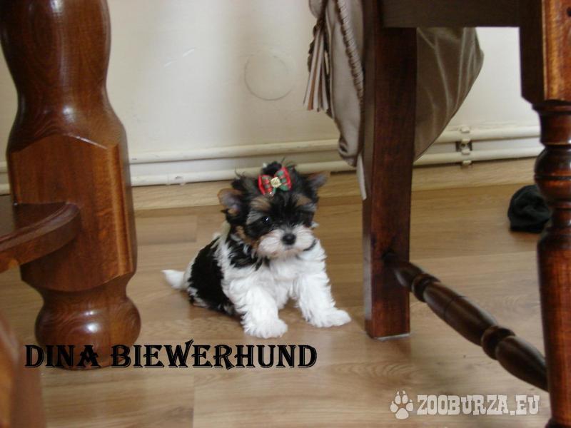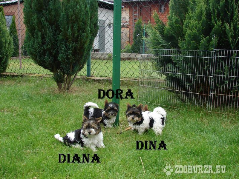 Opis: Witamy. Mamy do zaoferowania piękne pieski rasy York Biewer o imionach :DORA,DIANA,DINA i DYZIO. Szczeniaczki posiadają czteropokoleniowe rodowody ,są zaszczepione , odrobaczone ,mają gęsty, piękny włos, budowa ciała anatomicznie prawidłowa , są po przeglądzie hodowlanym ,mają wszczepione mikrochipy.Pieski urodzone 29 marca. Rodzice szczeniąt : Ojciec - Macho Ku Radości (posiada testy DNA wykonane w Państwowym Instytucie Badawczym Zootechniki w Krakowie) Mama - SANDY Ku Radości ( testy DNA j.w. ). Suczki w cenie 2300 zł PIESEK SPRZEDANY...