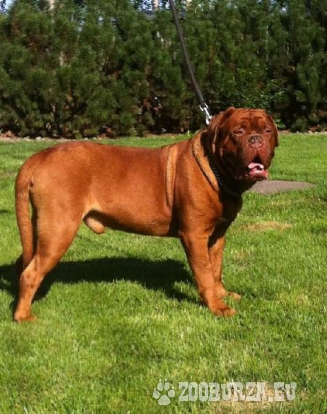 Opis: Witam mam do zaoferowania wspaniałego reproduktora rasy Dog de Bordeaux Młodzieżowy Champion Polski, Champion Polski 5x BOB 13x CWC 4 X Rez CACIB 2 x CACIB BEVERLY Sati Quantum (FCI) ur. 2009r. maść ruda z czerwoną maską, kryje naturalnie medale: 13 złotych, 1 srebrny(rozpoczęty interchampion) WARUNKI KRYCIA USTALANE INDYWIDUALNIE
