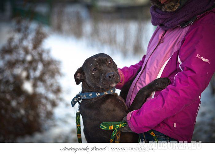 Popis: Czekoladowa sunia w typie pitbula, ma ok. 4 lat. Trafiła do schroniska wystraszona i zamknięta w sobie. Teraz jest już znacznie lepiej - Ama bardzo cieszy się na widok ludzi i wtula w nich jak tylko może. Jedzenie z ręki bierze delikatnie, jest kochana i mądra. Na smyczy chodzi ładnie i powoli, szybko się uczy. Często szuka oparcia w opiekunie. Nie dogaduje się z większością psów dlatego w nowym domu powinna być jedynaczką. Na początku będzie potrzebowała trochę czasu by zaufać nowemu opiekunowi, ale później na pewno go pokocha całym swoim psim sercem. Suczka jest zdrowa, zaszczepiona i wysterylizowana. Sunia przebywa w schronisku w Środzie Wielkopolskiej. Kontakt : tel. 691 365 757;