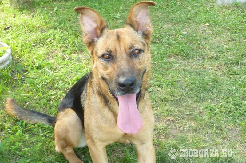Popis: Táto 2-ročná kríženka nemeckého ovčiaka a staforda už rok čaká na svojho pána v košickom útulku. Má výbornú, nekonfliktnú a prispôsobivú povahu. Je temperamentná, preto je ideálnou spoločníčkou pre aktívnych ľudí, ktorí sa jej budú venovať. Rýchlo chápe a je vhodná aj na vážnejší výcvik. Ovláda povely: „ku mne“, „sadni“. Hodí sa k rodine s trošku väčšími deťmi. Môže byť na dvore so zateplenou búdou alebo v byte, pretože má hygienické návyky, len jej treba poskytnúť dostatok pohybu. Je sterilizovaná. Adopčný poplatok je okolo 45 eur za uhradenie časti veterinárnych poplatkov, očkovanie, odčervenia a sterilizáciu.