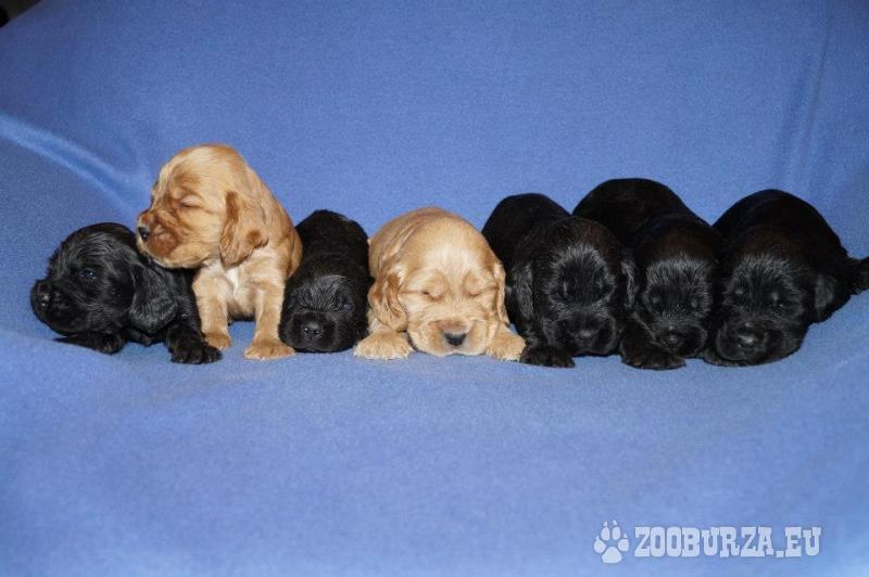 Popis: Nabízím štěňátka – pejsky Anglického kokršpaněla s PP barvy černé z chovatelské stanice „od Bukové studánky“. Štěňátka jsou odchována v bytě, plně socializovaná, zvyklá na běžný domácí provoz. K novým majitelům odchází odčervená, plně očkovaná s mezinárodním očkovacím průkazem, odčervená a očipovaná. K odběru ihned. Chovatelský servis samozřejmostí. Nezávazná návštěva vítaná.