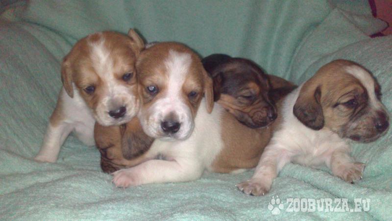 Popis: Darujem križence Bigla.Matka čistokrvny Bigl otec neznamy.šteniatka su podobne matke.V ponuke su 4feny a 2psy.Odber po 5-tyždnoch šteniatka su očkovane.Len seriozne!