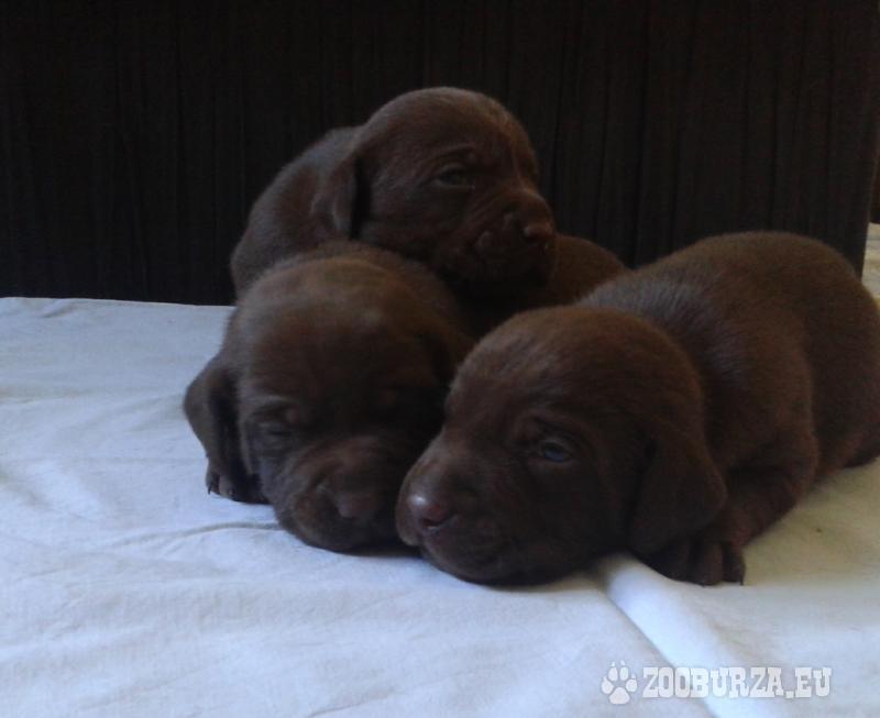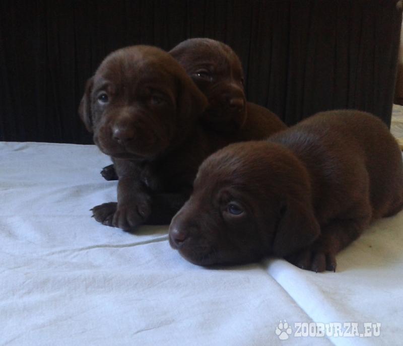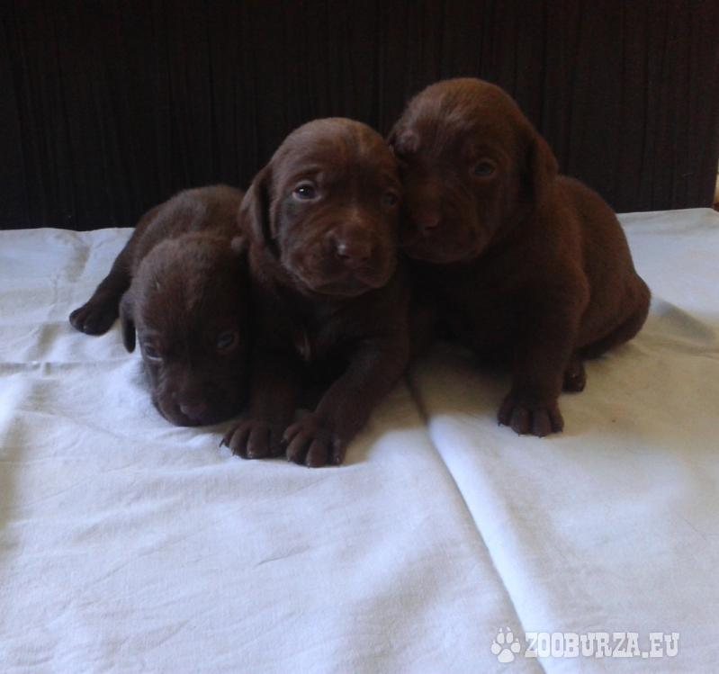 Popis: Ponúkam na predaj krásne šteniatka labradora hnedej farby (1 psík a 2 fenky). Majú 3 týždne, k odberu budú koncom augusta, zaočkovaní a odčervení, bez PP.