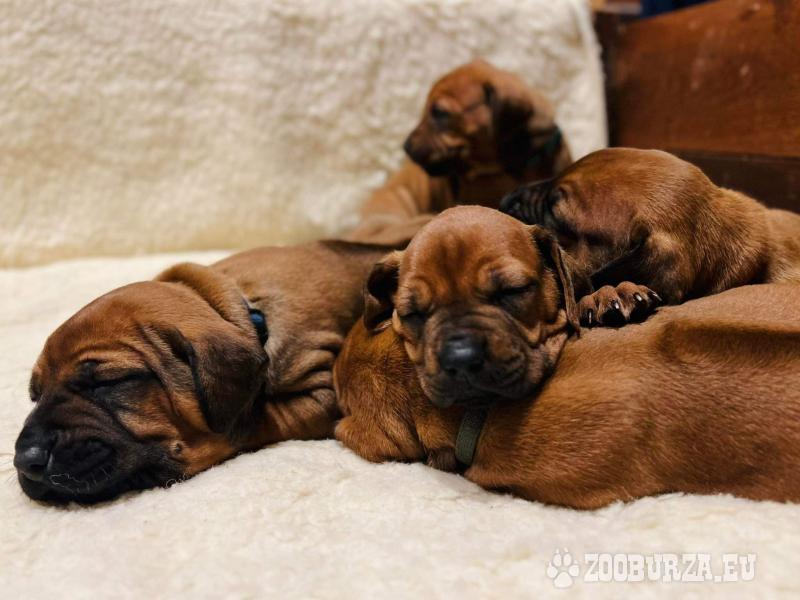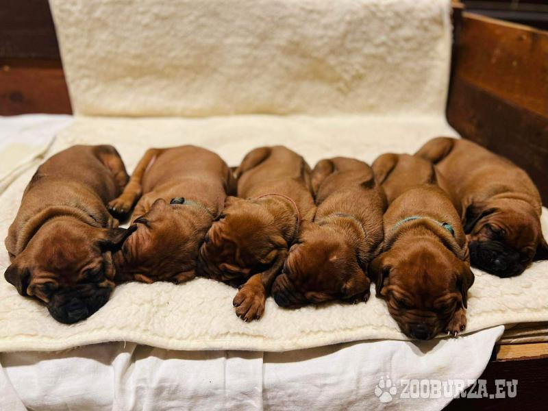 Popis: Krásne čistokrvné šteniatka Rhodesian Ridgeback bez PP výbornej povahy, vyrastajúce v rodinnom prostredí s deťmi narodené 20.11. Po krásnych rodičoch. 3x psík 3x fenka Odber možný v Januari Budú odčervené ,očkované ,a čipované.