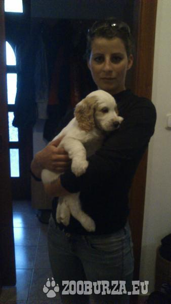 Popis: Predáme šteniatko psa 8 týždňového čistokrvného anglického kokeršpaniela, psík je biely s hnedými ušami. Prvý z vrhu. Odčervený a zaočkovaný.